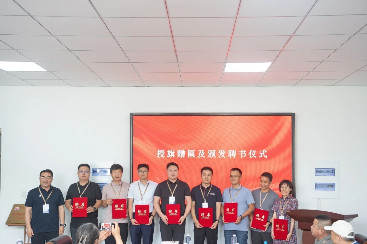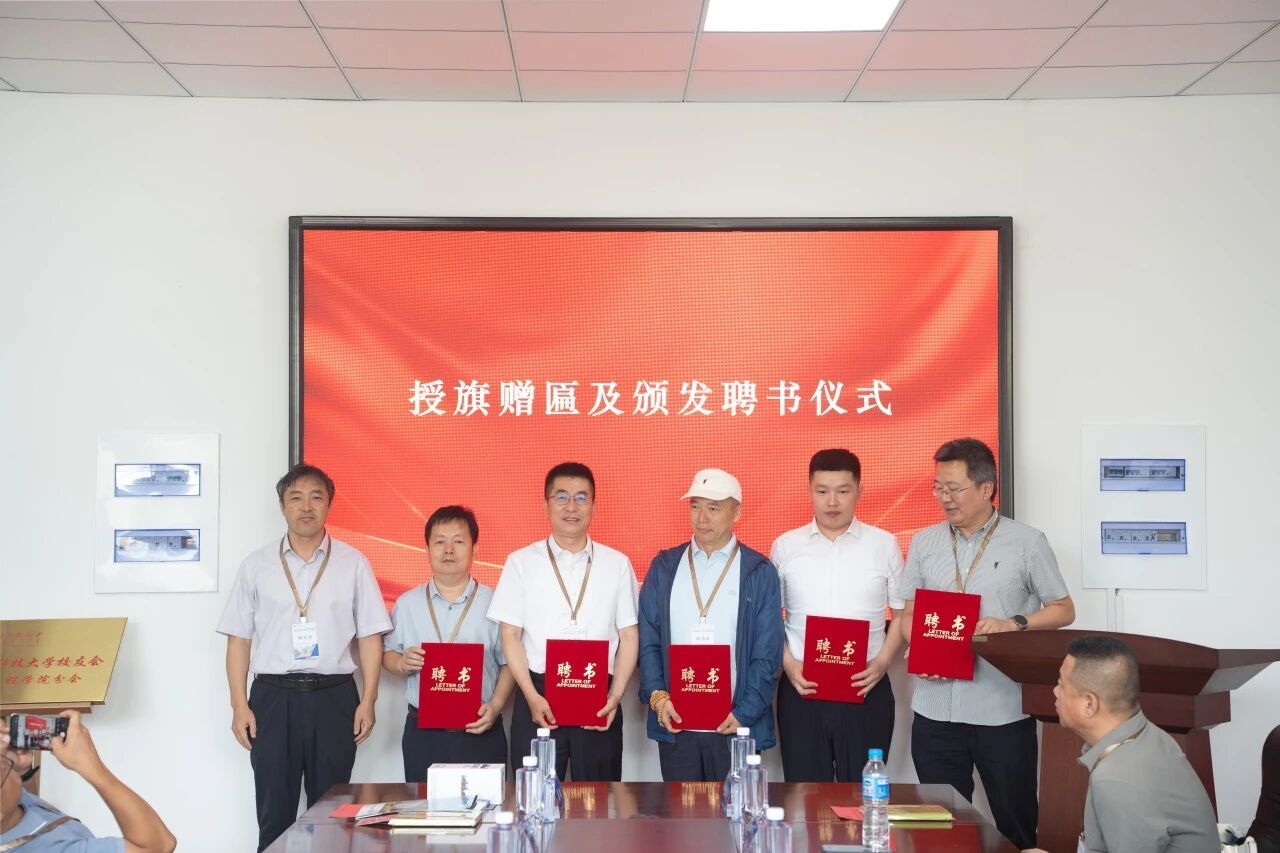 韩永全向新成立的机械工程学院校友分会授旗、赠匾,为新当选的分会会长、副会长颁发聘书。翟耀飞为新当选的秘书长、副秘书长颁发聘书。